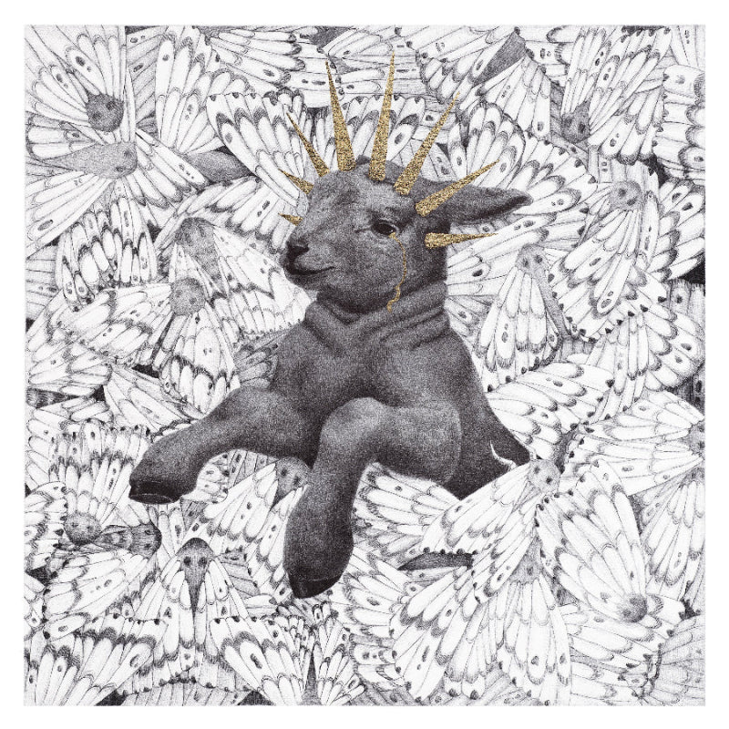 ✶Black ballpoint pen and gold-metal leaf on paper.